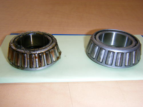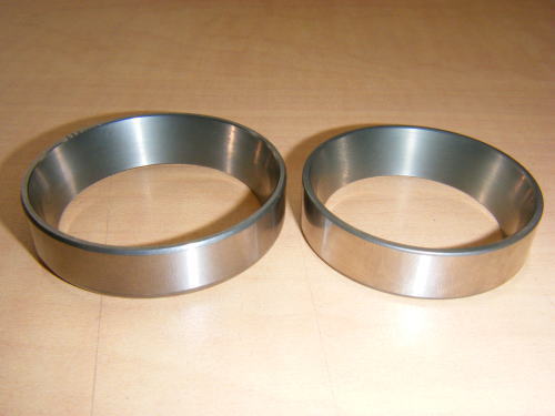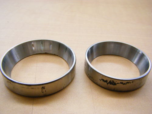 これはベアリングの相方のレースという部品で、○×を判断するのはベアリングではなくレースですることになっています。左がフレームの首の下ので右が上のモノです。