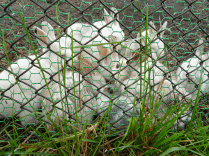 ハイエースの後のドアをあけて雨をしのぐことに…。
