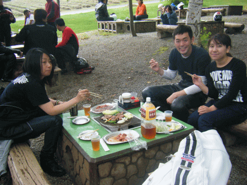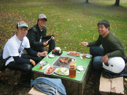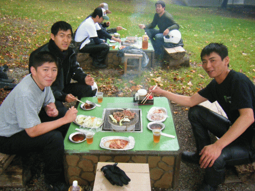 ざーっと道が川になる位の勢いで雨が降ったりしましたが、何とか外でジンギスカンできました♪