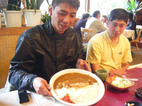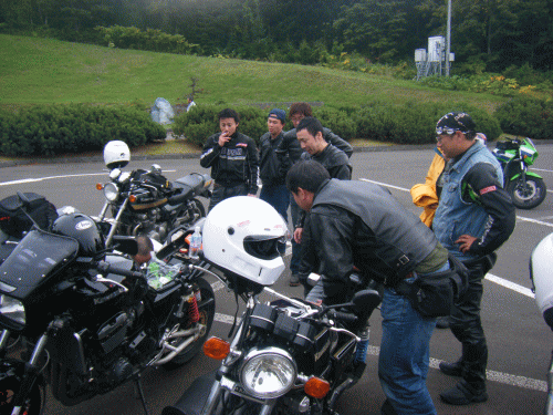 そして、食べる合間に試乗です。片道5km位なんですが折り返し地点は雨降ってて、帰ってきた人たちは濡れてる状態で、気まぐれな雨です。