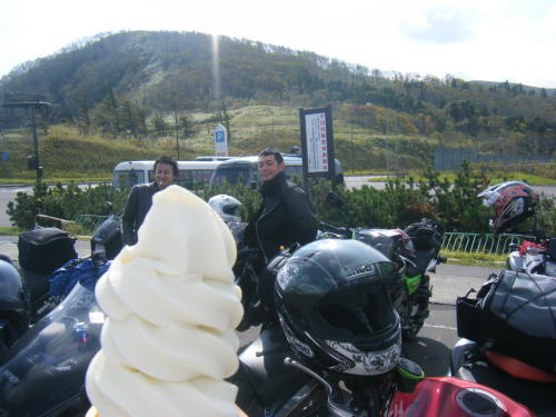 途中、芦別で休憩&給油。バイクにもゴハンをね。