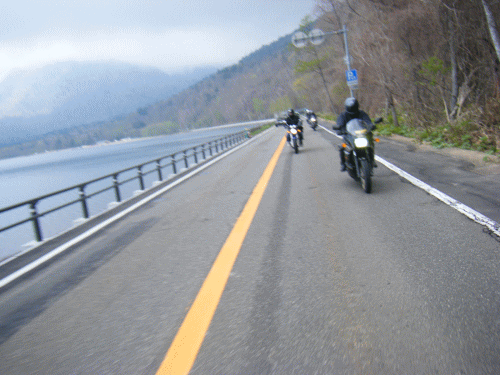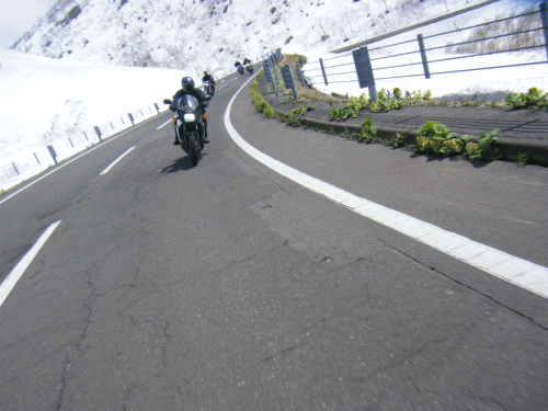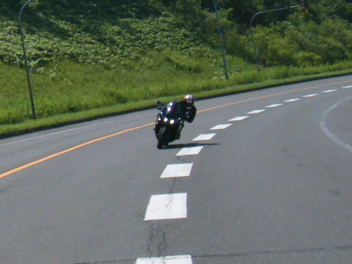 あれ?バイクの音??なんて思ってたら、車組よりバイクで追っかけの人が先に来た!